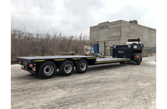 45200 кг, шины 395/85R20 или 445/65R22,5 / 6+1, платформа 12000 (12862 до трапов) x 2530 с уширителями до 3030 мм, ССУ 1550 мм, рессорная или пневматическая подвеска, съемные стойки, механические трапы с пружиной