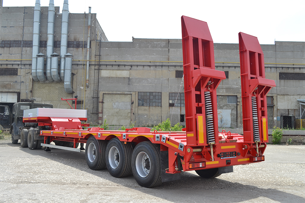 39000 кг, шины 385/65R22,5 или 445/65R22,5 / 6+1, платформа 11080 до трапов) x 2500 с уширителями до 3000 мм, ССУ 1510 мм, рессорная подвеска, съемные стойки 1500 мм, механические трапы
