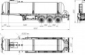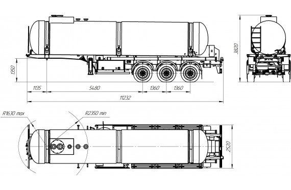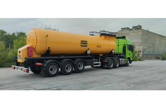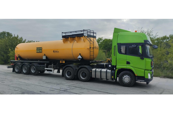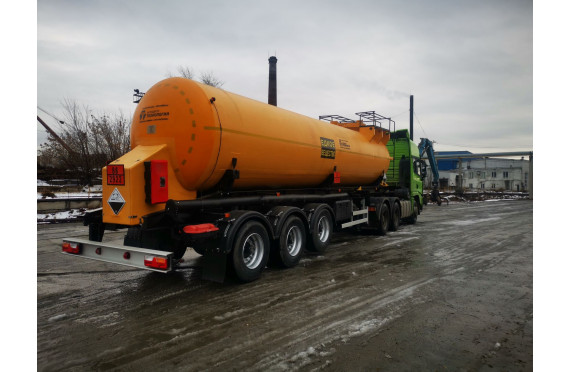 Материал: химстойкое стекловолокно, емкость: 30 куб.м., сечение круглое, конструкция: однослойная или трехслойная (текловолокно + утеплитель + стекловолокно), крепление: при помощи стяжных лент, перевозимые жидкости: нефть, автошины 385/65R22,5; первая ось - подъемная.